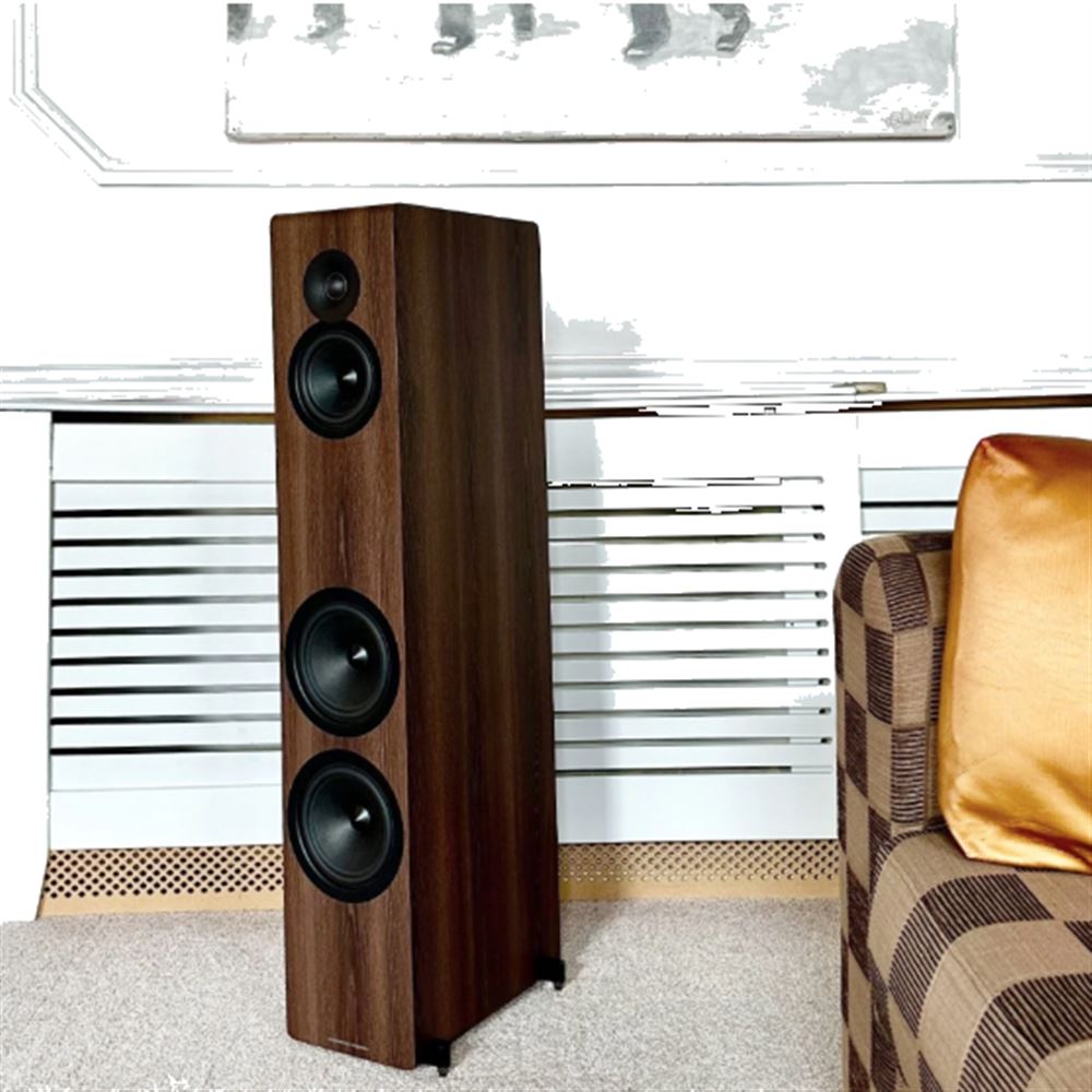 The cabinet is available in a choice of walnut or newly developed ‘silk-touch’ matte black or white finishes featuring screen-printed logos with trims and grilles which are colour matched for each finish. The new AE320² is also supplied with aluminium feet and spike covers which will easily integrate within any home décor while being considerate to any floor surface.