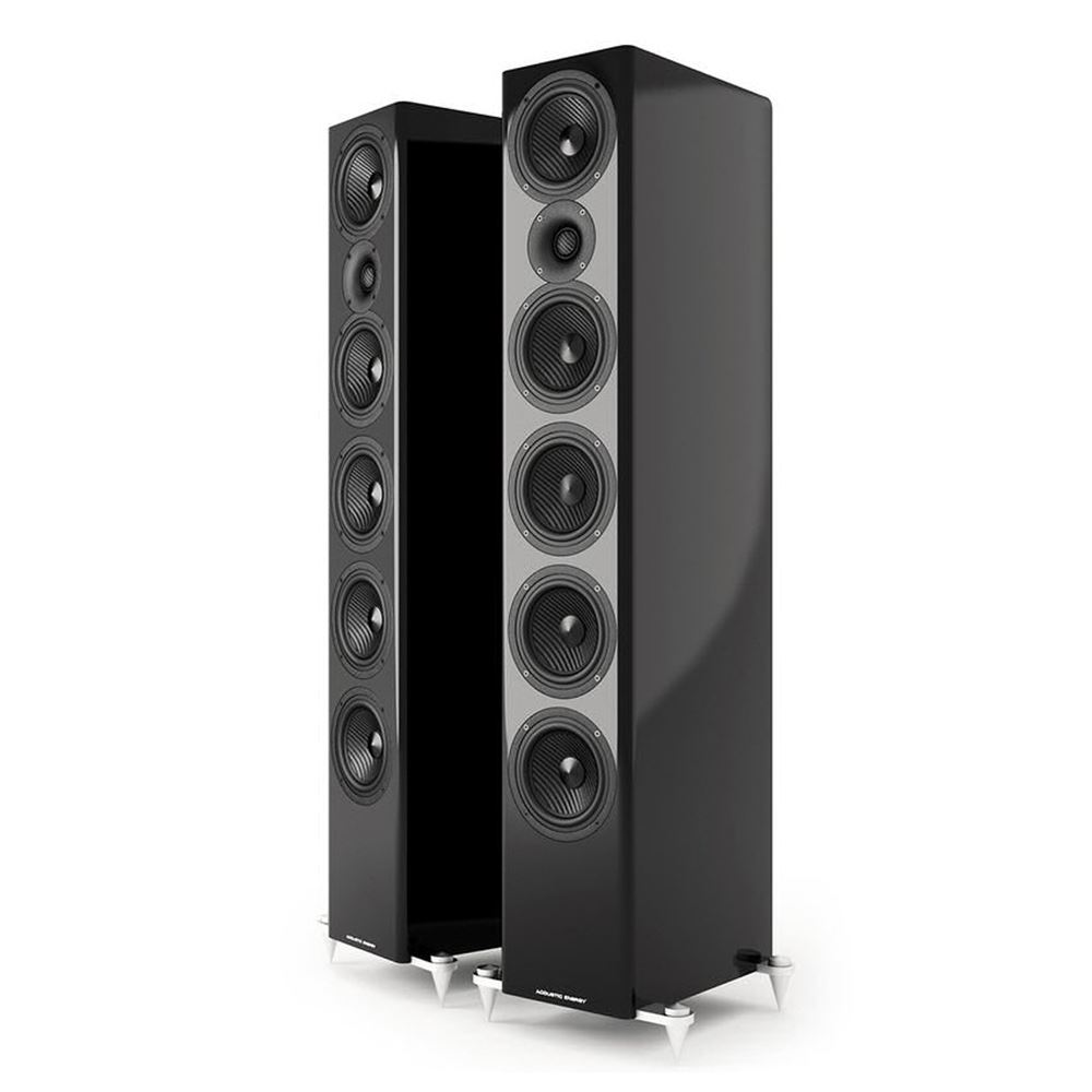 The slim-line cabinets are finished in Piano Gloss Black, Piano Gloss White or American Walnut wood veneer finishes. Solid Aluminium bars are supplied to ensure rigid floor-coupling and maximum stability, whilst the stiffness of the metal structure reduces the room to speaker interaction.
