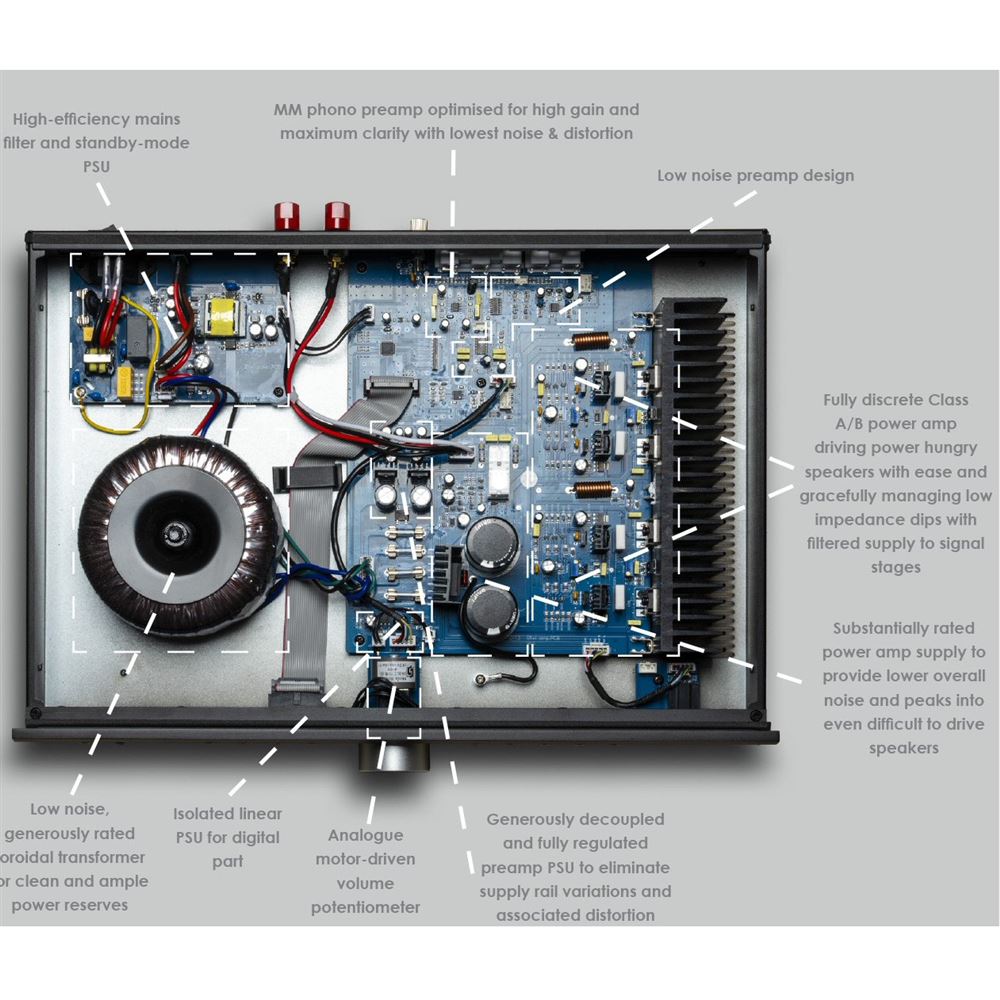 Any RF frequencies are influencing the performance of the analogue amplifier. Consequently, our design team, headed by chief technical director Simon Quarry: took one year to improve the layout of the circuitry and match the boards in relation to the transformer carefully selected components for long-term availability and reliability, to avoid any change which would cause a redesign of the product RF shielding and board placement to avoid interference with analog stages